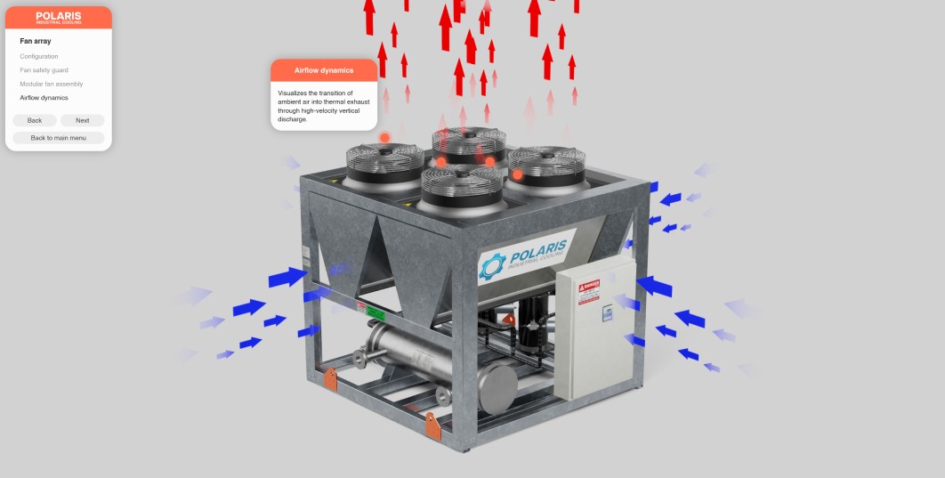 The brief had two parts. First: build an interactive 3D viewer their sales team could send to prospects. Something that explains the product's external configuration, internal components, and technical specs without a rep on the call walking them through it.