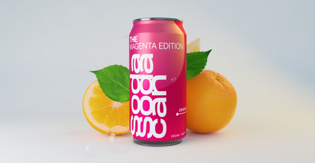 A 3D visualization of a soda can designed as a creative playground for marketing teams to experiment with colors, views, and compositions in a photo-realistic environment.