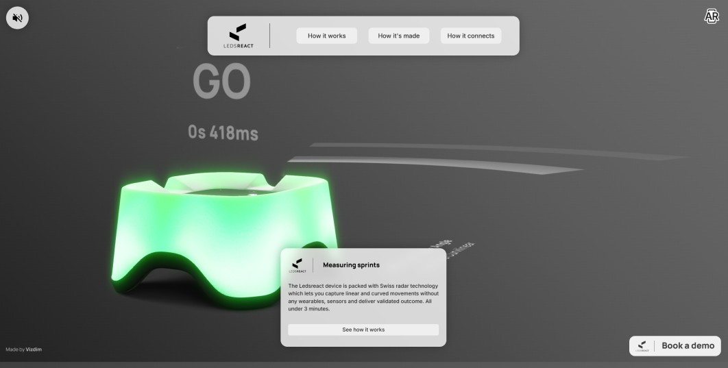 Ledsreact builds field-testing systems for athletes that respond to movement in real time. Their clients are professional teams, clubs, and training schools across the United States and Europe. Their reps were closing conversations on Zoom, sending spec sheets via email, and asking prospects to imagine what a system would look like installed in their facility. The process was slow, as they were often limited by geography. What they needed wasn't more content. They needed something that worked before the conversation even started.